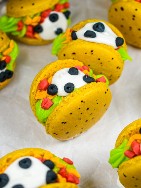 Featuring a pair of classic French macaron shells, chocolate “taco meat,” buttercream “lettuce,” royal icing “sour cream” and fondant “taco fixings,” these cute taco cookies really do look just like the real thing. Why Do …