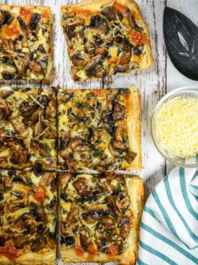 A meatless mushroom tart recipe featuring sautéed mushrooms, cheddar cheese, and fresh herbs, all layered on a flaky puff pastry base. Why Make This Puff Pastry Mushroom Tart? Mushrooms are one of those divisive, “love …