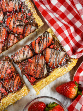 A Nutella puff pastry pizza with chocolate hazelnut spread, sliced fresh strawberries, and a dark chocolate drizzle. The sweetest Nutella dessert pizza for Valentine’s Day! Why Make This Nutella Puff Pastry Pizza? I often reach …