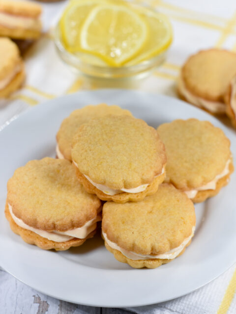 Lemon cream cookies featuring a pair of homemade lemon cookies with a piped lemon custard cream filling sandwiched in between. The best lemon creme cookies! What Inspired These Lemon Cream Cookies? Biscuits (cookies, for my …