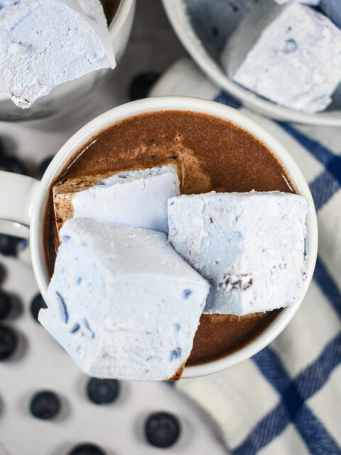 A blueberry hot chocolate recipe made with dark chocolate, puréed fresh blueberries, and homemade blueberry simple syrup. Best served with homemade blueberry marshmallows! Why Make This Blueberry Hot Chocolate? I enjoy a mug of classic …
