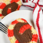 This festive Christmas cake roll recipe features a red-and-white striped sponge cake rolled around a homemade chocolate peppermint buttercream filling. The best peppermint cake roll for Christmastime!