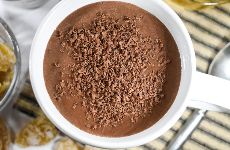 While best served immediately, you can prepare your ginger hot chocolate in advance (or make a double recipe) and store it in an airtight container in the refrigerator for up to 3 days. Reheat in a small pan on the stovetop, or in a microwave-safe mug.