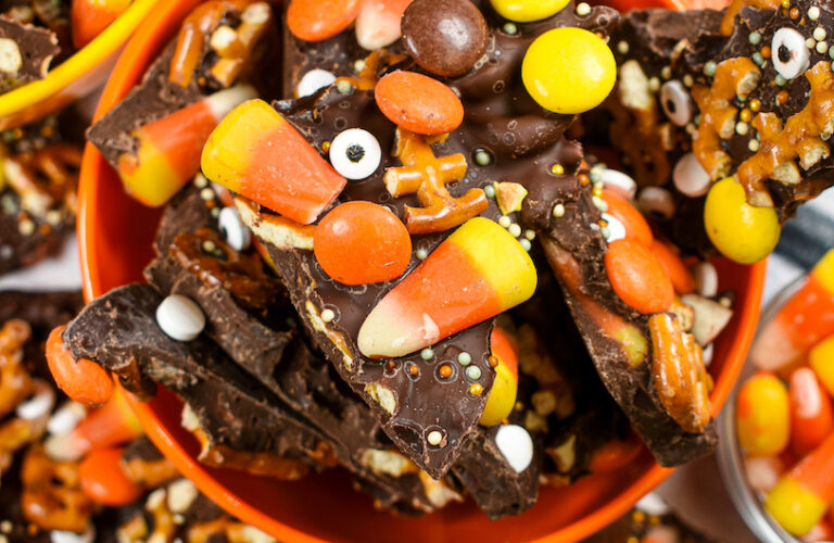 Halloween bark keeps for several weeks at room temperature, so it’s a great option for shipping to out-of-town friends.