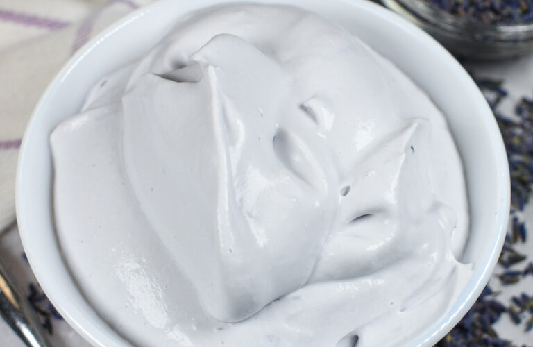 To whip, add the chilled cream to a large metal mixing bowl or the bowl of a stand mixer and mix on medium-high speed until soft peaks form. Mix in the confectioner’s sugar, vanilla extract, and a tiny bit of purple gel food coloring for visual appeal, and you’re ready to garnish mugs of hot chocolate, fill choux buns, or top dishes of lavender ice cream.
