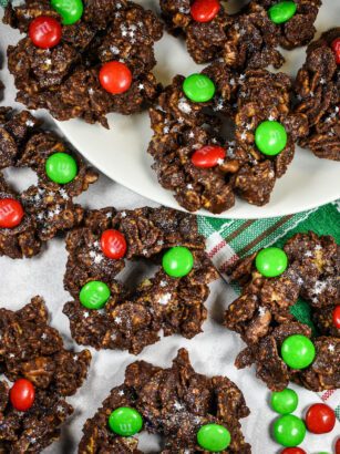 Festive chocolate cornflake wreaths made with cereal, melted chocolate chips, walnuts, and honey, plus plenty of fun toppings. The easiest no bake Christmas cereal wreaths to gift and enjoy during the holiday season! Why Make …